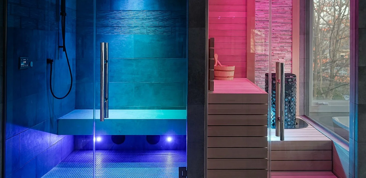 Relax, unwind, and let yourself be enveloped in the tranquil color-soaked vapor. As your bath warms, the emerging fog becomes a vibrant showcase to fulfill its promise of absolute color bathing splendor. Once composed and restored, you will then want to select a color for your rejuvenating shower as you begin your transition back to reality. Transform your sauna experience into an escape from tension and fatigue with the Spectrum 511 chromotherapy color bathing system from Bathology. Select from an infinite array of vivid colors to create an effect that is exhilarating, calming, energizing or relaxing. Enjoy the synergy formed between the heat and color and delight in a truly extraordinary bathing experience.