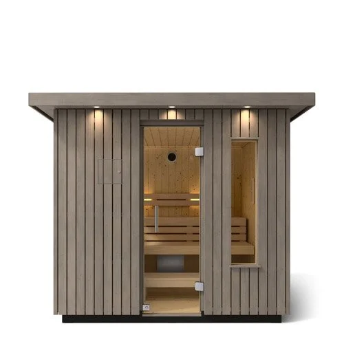 Enjoy the unsurpassed luxury of our Cube-Series Model CL4G outdoor home sauna kit. Its modern Scandinavian design features a full-glass front that showcases an incredibly spacious interior with room for up to 3 bathers and a height of over 6’2”!