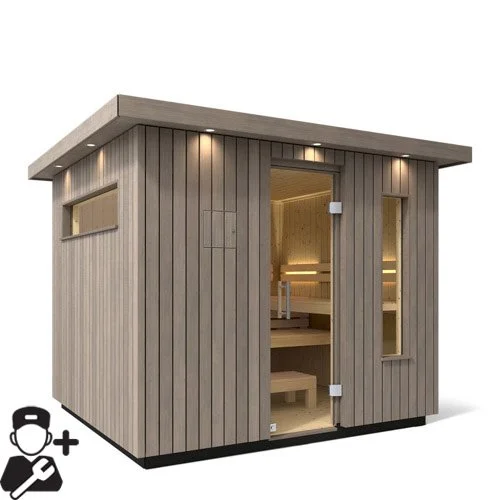 The weight and packaging of this handcrafted sauna sanctuary requires delivery by special appointment, and on a wooden pallet.